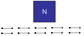В какую сторону отклонится горизонтальный пучок положительных ионов, если к нему сверху поднести магнит ?