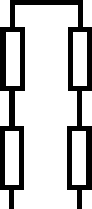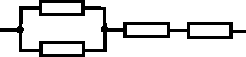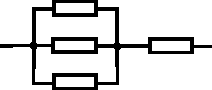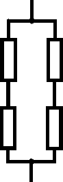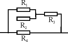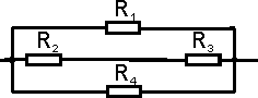 На рисунке дана схема смешанного соединения четырех резисторов по 10 Ом каждый. Найти общее (эквивалентное) сопротивление этого участка цепи.![]() |