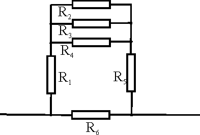 Найти общее сопротивление участка цепи, изображённого на рисунке, если R1 = 2 Ом, R2 = R3 = R4 = 15 Ом, R5 = 3 Ом, R6 = 90 Ом.![]() |