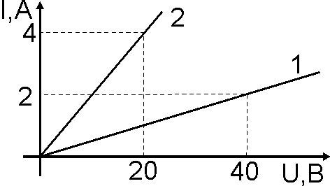 На рисунке изображены графики вольт-амперных характеристик двух проводников: 1 и 2. Сопротивление какого проводника больше и во сколько раз?![]() |