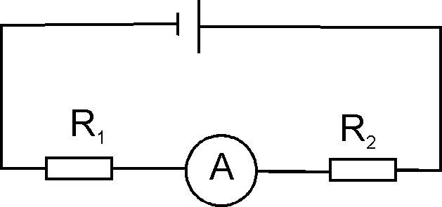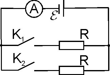 Два одинаковых резистора включены в цепь, как показано на рисунке. Как изменится показание альперметра, если замкнуть