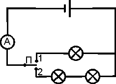 Три одинаковые лампы включены в цепь, как показано на рисунке. Как изменится сила тока в неразветвленном участке цепи, если: переключатель