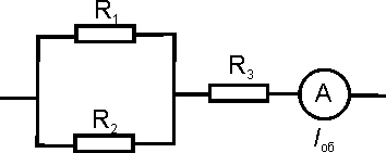 На рисунке дана схема соединения трех резисторов: R1 = 10 OM, R2 = 40 Ом и R3 = 32Ом. По какому резистору протекает ток наибольшей мощности? Определить общую мощность, потребляемую цепью, если Iоб = 2,5 А.![]() |