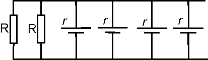 Пользуясь схемой, изображенной на рисунке, определить силу тока, проходящего по резистору R = 23,6 Ом, если ЭДС и внутреннее сопротивление каждого элемента соответственно равны ε = 12 В и r = 0,6 Ом. Сопротивление соединительных проводов ничтожно мало.![]() |