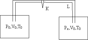 Два одинаковых сосуда объёмом V0 каждый соединены трубкой L с краном К. В левом находится 1 моль идеального газа под давлением Р0, в правом тот же газ при неизвестном давлении. Температура газа в обоих сосудах одинакова. После того как открыли кран, давление в левом сосуде увеличилось в два раза. Чему равнялось начальное давление в правом сосуде?