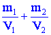 | Сосуд с газом m1 и объёмом V1 соединён с сосудом с газом массой m2 и объёмом V2. Найдите плотность газа в системе. |