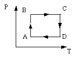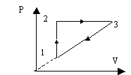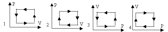 На рисунке приведён цикл процессов с идеальным газом в координатах РТ. В каком из ответов этот же цикл правильно представлен в координатах PV? |