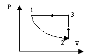Один моль идеального газа, содержащего N молекул, занимает объём V0, при давлении Р0 и температуре Т0. Чему равно изменение его внутренней энергии при увеличении давления в 3 раза в результате изохорного процесса 1 → 2? k - постоянная Больцмана. |