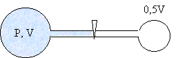В первом сосуде объёмом V давление газа равно р. Во сколько раз уменьшится давление газа, если к этому сосуду присоединить второй пустой сосуд объёмом 0,5·V? |