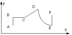 Идеальный газ переходит из состояния А в состояние F через промежуточные состояния, указанные на рисунке. Какой из указанных на рисунке процессов является изотермическим? |