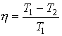 Определите выражение КПД реального теплового двигателя (Т1 и Т2 - температуры нагревателя и холодильника; Q1 и Q2 - количество теплоты, соответственно взятое от нагревателя и отданное холодильнику).