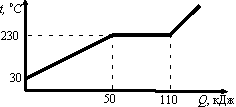 На рисунке представлен график зависимости температуры от полученного количества теплоты для вещества массой 1 кг. Первоначально вещество находилось в твёрдом состоянии. Определите удельную теплоёмкость вещества (Дж/(кг·0C) в твёрдом состоянии.![]() |