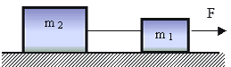 Два бруска массой m1 = 0,4 кг и m2 = 0,6кг движутся без трения равноускоренно под действием силы F2 = 2 H. Какова сила, действующая на брусок m2? |