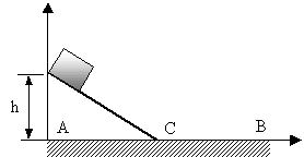 Тело соскальзывает с наклонной плоскости и останавливается в точке В. Найти коэффициент трения m одинаковый на всём пути, если высота наклона плоскости h, а АВ = l.