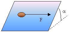 На плоскости, образующей угол α с горизонтом, лежит шайба массы m. Какую минимальную силу надо приложить к шайбе в горизонтальном направлении вдоль плоскости, чтобы она сдвинулась с места. Коэффициент трения равен μ. (μ > tg α). |