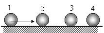 Шарик 1 имеет скорость v , а шарики 2, 3, 4, имеющие ту же массу, что и шарик 1, неподвижны. Все четыре шарика находятся на одной прямой, совпадающей с направлением скорости. Полагая, что все последовательные столкновения абсолютно упругие, определите скорость четвёртого шарика после столкновения. |