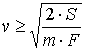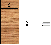 С какой скоростью должна лететь пуля массой m, чтобы пройти сквозь доску шириной S ? Сила сопротивления доски движения пули равна F.