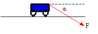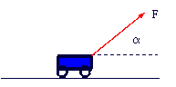 Записать II закон Ньютона для движения тележки массой m, если её тянут за верёвочку с силой F, направленной под углом α к горизонту, μ - коэффициент трения.![]() |