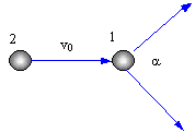 Какова скорость бильярдных шаров после удара, если один из них до удара покоился, второй двигался со скоростью v0, а после удара они разлетаются под углом α, симметрично относительно направления первоначальной скорости ?![]() |