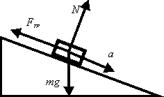 В инерциальной системе отсчёта брусок начинает скользить с ускорением а вниз по наклонной плоскости. Указать модуль равнодействующей сил, действующих на брусок.![]() |