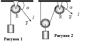 На какую высоту поднимутся грузы в первом и втором случаях, изображённых на рисунке, если перемещение конца верёвки l = 1 м ?![]() |