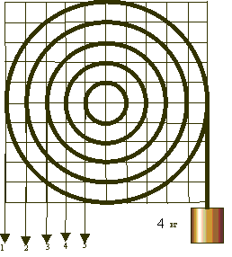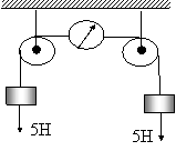 На двух блоках подвешены одинаковые грузы, связанные между собой через динамометр. Вес каждого груза 5 Н. Что показывает динамометр?![]() |