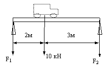 Автомобиль стоит на мосту, лежащем на опорах. Определите силы давления автомобиля F1 и F2, приложенные к опорам.![]() |