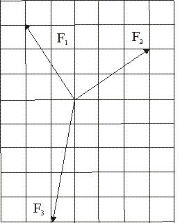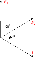 Найдите модуль и направление равнодействующей трёх сил по 4 Н каждая. Углы между первой и второй, а также между второй и третьей силами равны 60°.![]() |