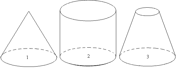 На горизонтальной поверхности находятся в вертикальном положении однородные тела, имеющие формы цилиндра, конуса и усечённого конуса. Высота и площадь основания этих фигур одинаковые. Какое из этих тел наиболее устойчиво ?![]() |