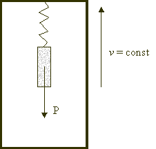 К потолку лифта на пружинных весах подвешено тело массой m. Каково показание F прожинных весов при движении лифта вверх с постоянной скоростью ?![]() |