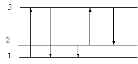 На рисунке показаны переходы электрона между тремя энергетическими состояниями атома. Сколько переходов связано с поглощением и сколько с излучением света?![]() |