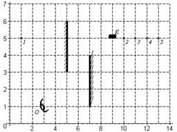 Определите, в какой точке глаз наблюдателя, находящейся в точке О, видит изображение светящейся точки К, если края зеркала закрывают её для прямого наблюдения.![]() |