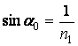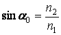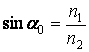 Свет переходит из среды с абсолютным показателем преломления n1 в среду с показателем преломления n2. Каким выражением определяется предельный угол полного отражения? (n1 > n2)