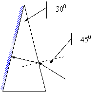 | Два плоских зеркала расположены под углом 60°. Под каким углом должен падать луч на первое зеркало, чтобы, отразившись от него, он был направлен перпендикулярно поверхности второго зеркала ? |