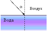 Луч света падает из воздуха на границу воздух - вода под углом α. При каком угле α произойдёт явление полного внутреннего отражения?