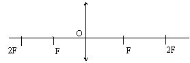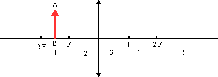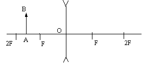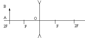 На рисунке изображена главная оптическая ось двояковогнутой линзы. Каково изображение предмета АВ, если он помещен в двойном фокусе?![]() |