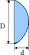 Из стекла, показатель преломления которого 1,5, изготовлена проско-выпуклая сферическая линза, изображённая на рисунке. Определите фокусное расстояние (см ) линзы, если D = 10 см и d = 1 см.![]() |