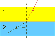 Световой луч, проходя через границу двух сред, преломляется, как это показано на рисунке. Это объясняется так: