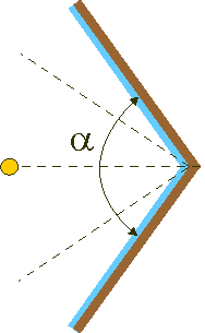 На одинаковом расстоянии от пересекающихся зеркал, показанных на рисунке, поместили точечный источник света S. Зеркала образуют между собой угол α = 120 °. Расстояния между первыми мнимыми изображениями источника равно H. Чему станет равным расстояние между ними, если угол α уменьшить в 2 раза ? |