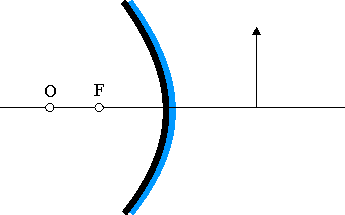 Какое изображение получается у предмета в выпуклом зеркале, изображённом на рисунке?![]() |