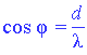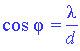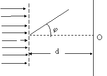 | На дифракционную решётку с периодом d перпендикулярно её плоскости падает параллельный монохроматический пучёк света с длиной волны λ. Какое из приведённых ниже условий выполняется для угла φ, под которым наблюдается первый дифракционный максимум ? |