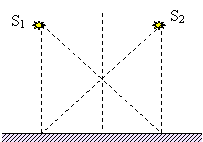 Два когерентных источника S1 и S2 испускают монохроматическое излучение с длиной волны λ = 0,5 мкм. Какова разность путей (мкм) от источников до точки М, если в ней наблюдается первый интерференционный максимум после точки О, лежащей посередине между проекциями S1 и S2 на плоскость экрана?![]() |