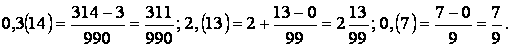 с точностью до 10-n.В частности, отсюда следует, что все периодические дроби с периодом 9 равны соответствующим конечным десятичным дробям. Например,