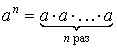 Определение. Степень числа а с натуральным показателем n(n ≥ 2) есть произведение n сомножителей, каждый из которых равен а: