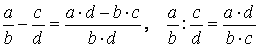 Вычитание и деление дробей определяются как действия, обратные сложению и умножению. Из этого определения выводятся правила этих действий: