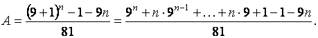 Решение. Достаточно доказать, что число An делится на 9. С этой целью применим метод индукции.
