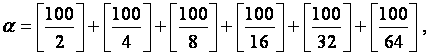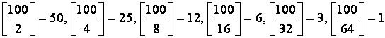 Решение. Очевидно, искомое α — показатель повторения 2 в разложении 100 равно числу всех чисел от 1 до 100, делящихся на 2, 4, ..., 64.