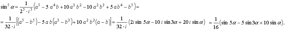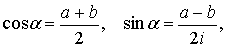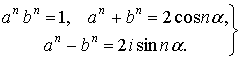 Полагая a = cos α + i sin α, b = cos α - i sin α, имеем
