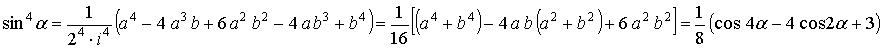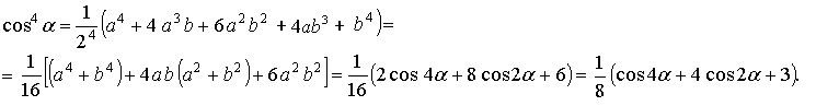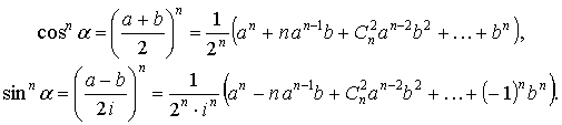 Укажем общий метод получения формул для понижения степеней cosn α и sinn α.