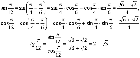 и т. д.Примечание. Значения тригонометрических функций аргументов